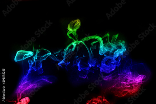 © sirawut, Fototapeta premium Abstract smoke isolated on black background,Rainbow powder