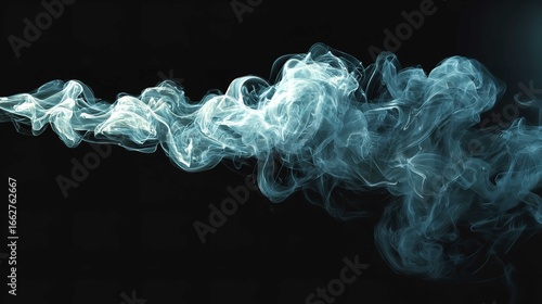 © Asim Ali, Fototapeta premium Abstract Smoke Stream, Teal Vapor, Black Background, Design Element stock image