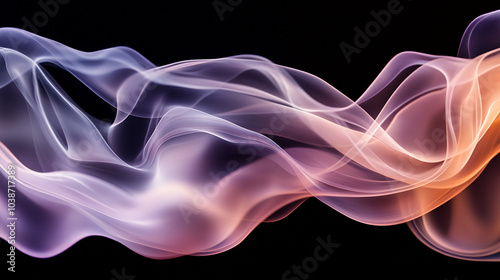 © PhotoArtHub, Fototapeta premium Abstract smoke swirls in shades of purple and orange against a black background. Abstract art illustration