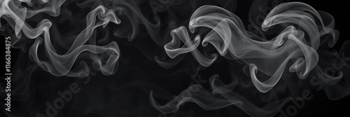 © Chalermrach, Obraz premium Abstract smoke swirls on a dark black background, thick, ethereal
