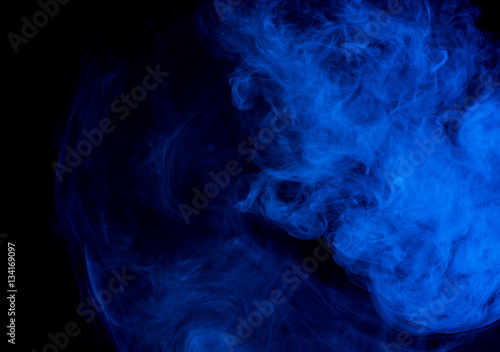 © Vagengeim, Fototapeta premium Abstract smoke Weipa. Personal vaporizers fragrant steam. The concept of alternative non-nicotine smoking. Blue smoke on a black background. E-cigarette. Evaporator. Taking Close-up. Vaping.
