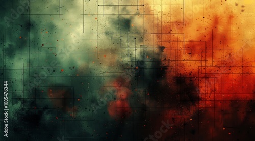 Fototapeta premium Abstract smoky textured background with grid overlay.
