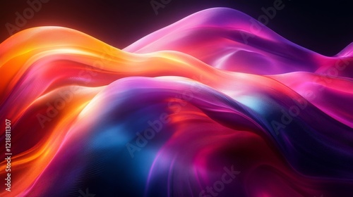 © Tatiana Vagizova, Obraz premium Abstract smooth ribbons with liquid-metal effect and neon glowing gradients. Generative AI