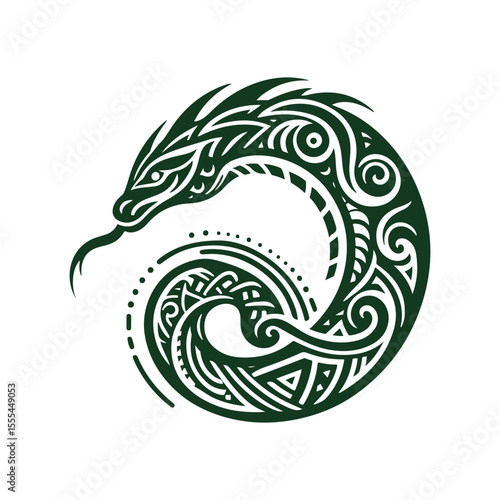 © attha, Naklejka premium Abstract snake curve tribal design in green