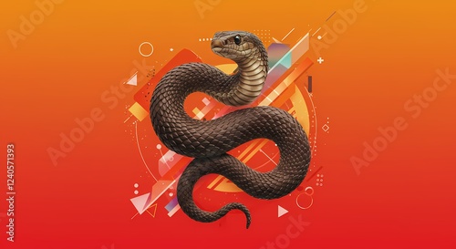 © thoif, Obraz premium Abstract Snake Illustration Geometric Design Reptile Art Orange Background