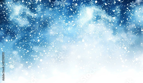© Aleena, Obraz premium Abstract snow background with falling snowflakes and bokeh lights. Winter blizzard with light blue gradient sky. Christmas holiday