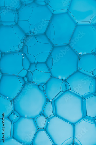 Fototapeta premium Abstract soap bubble and pattern on blue background.