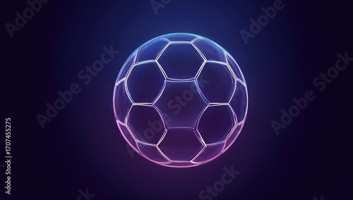 Fototapeta premium Abstract Soccer Ball Illustration with Glowing Hexagonal Pattern on Dark Blue...