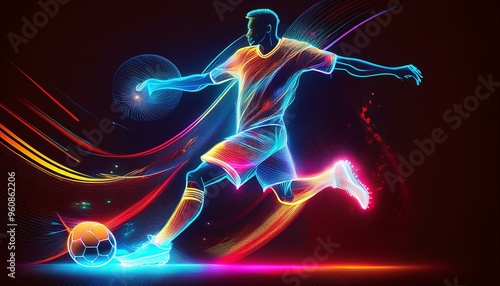 Fototapeta premium Abstract Soccer Player with a ball in motion. Digital Football Athlete is...
