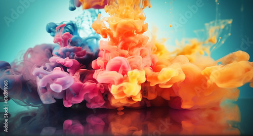 © VSzili, Obraz premium Abstract soft colorful ink splash in water background. Generative AI