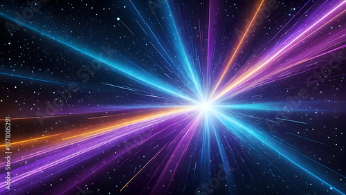 © Aleksey, Naklejka premium Abstract Space Background with Colorful Light Rays