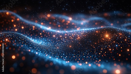 Fototapeta premium Abstract Sparkling Blue and Orange Waves, Digital Art