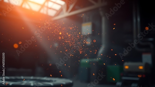 Obraz premium Abstract sparks and molten metal particles mid-air in a dark industrial...