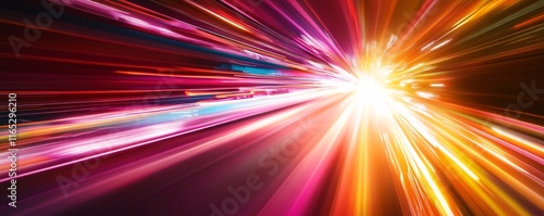 Fototapeta premium Abstract speed motion background showing light trails converging to a bright...