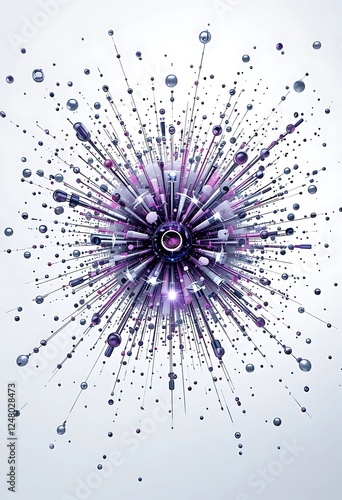© Supardi, Obraz premium Abstract Sphere Exploding with Metallic Rods and Spheres