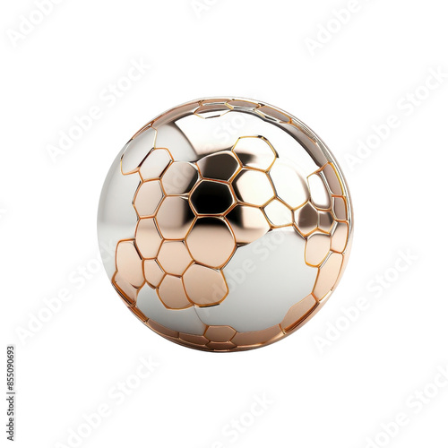 © Naphatson, Obraz premium Abstract sphere with a metallic, geometric honeycomb pattern.