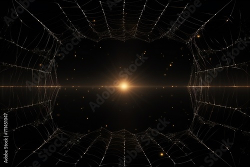 Fototapeta premium Abstract spider web like digital glass frame with glow, on black background, empty copy space Generative Ai