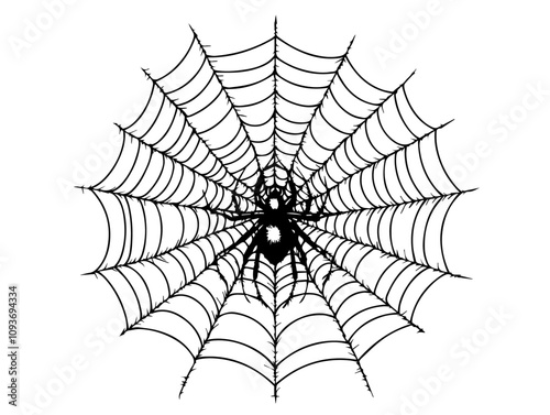 Obraz premium Abstract spider web pattern with spider – black vector graphic