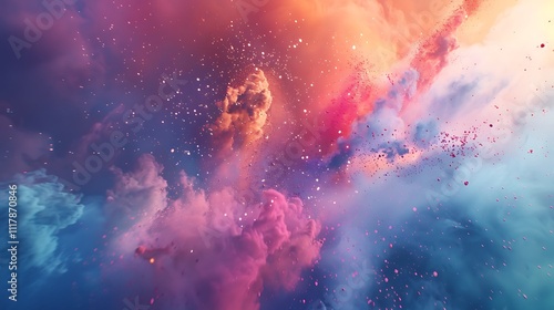© Hafsa iqbal, Fototapeta premium Abstract splatter of vibrant colors with shades of pink, blue, and gold blending in a dynamic, glowing, cosmic effect.