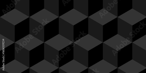 Fototapeta premium Abstract square black grid tiles cubic square shape backdrop texture. cube geometric wall and floor vector diamond hexagon triangle wallpaper background.