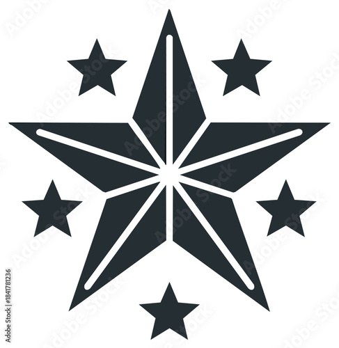 © Олександр Тюленев, Obraz premium Abstract star and six smaller stars in a dark gray design