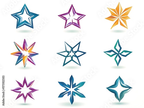 Fototapeta premium Abstract Star Icon Set Featuring Black and Gold Designs with Modern, Elegant,...