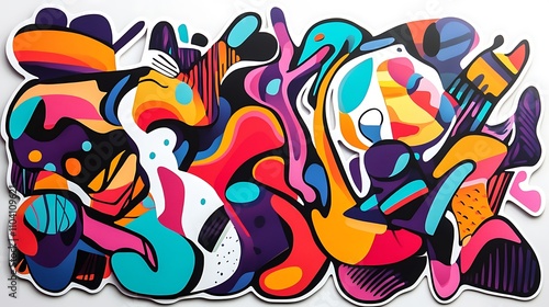 © WINGGOD, Fototapeta premium Abstract sticker collection with fluid patterns and high-energy designs