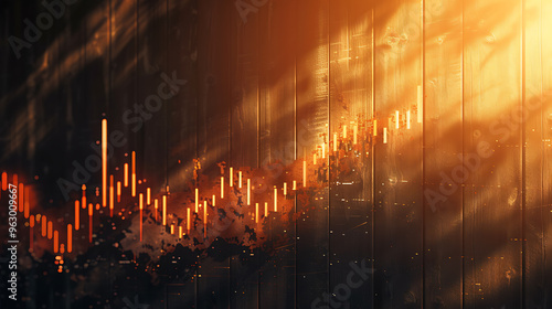 © Izzain, Fototapeta premium Abstract stock market chart glowing on dark wooden background with a warm spotlight.