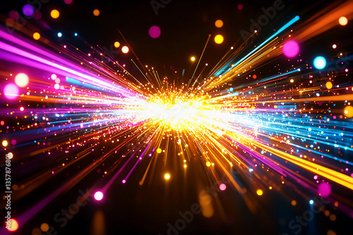 © Chen, Fototapeta premium Abstract Streaks of Luminous Light Passing Through a Glowing Grid, Creating a Speed Illusion with a Colorful Gradient Shift from Red to Yellow
