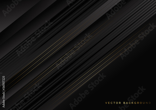 Obraz premium Abstract stripes black and golden lines diagonal overlap on black background. Luxury style.