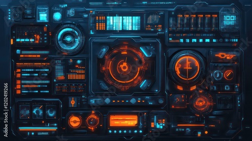 © florynstudio3, Obraz premium Abstract style on a blue background. display in futuristic cyberpunk style.