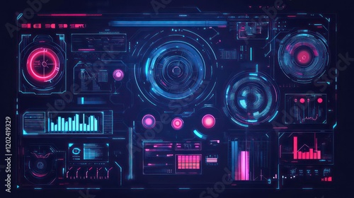 © florynstudio3, Fototapeta premium Abstract style on a blue background. display in futuristic cyberpunk style.