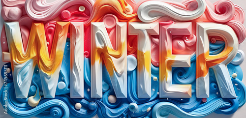 Obraz premium Abstract style winter banner design with typography and colorful fluid shapes.