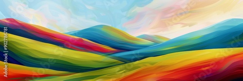 © Rattana, Obraz premium Abstract Stylized Digital Painting of Vibrant Rolling Hills Landscape