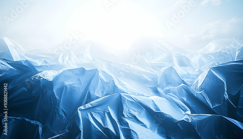 Obraz premium Abstract, stylized, light blue mountains, dramatic folds, glowing light.