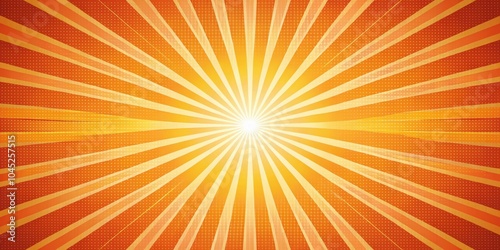 © Theerawat, Obraz premium Abstract Sunburst Design with Radiating Lines and Dotted Pattern in Warm Orange and Yellow Hues
