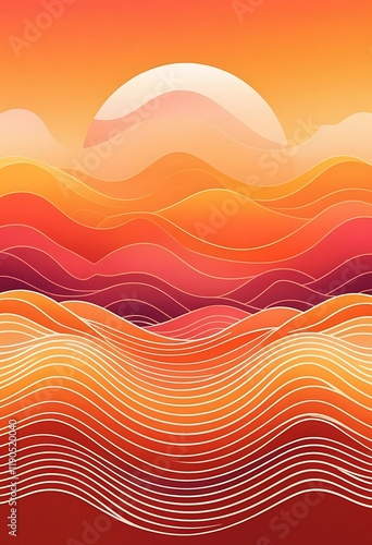 © Supardi, Fototapeta premium Abstract Sunset Landscape With Wavy Lines And Gradient Colors