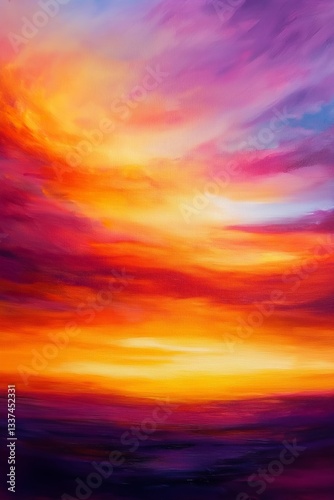 © Daniel, Obraz premium Abstract Sunset with Flowing Liquid Colors