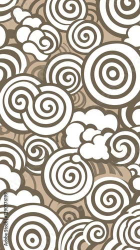 © MaiHuong Studio, Obraz premium Abstract Swirl Cloud Pattern Seamless Beige and White Texture