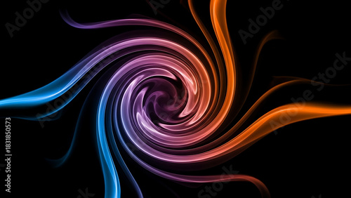 © Md, Obraz premium Abstract Swirl of Blue Orange and Purple Smoke on Black Background