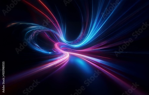 © joeycheung, Fototapeta premium Abstract swirl of bright, glowing blue and pink lines on a dark background.