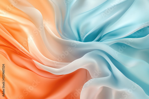 Fototapeta premium Abstract swirl of flowing fabric with light blue and orange hues creates a...