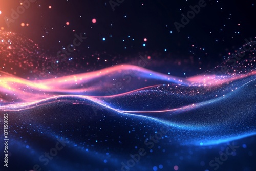 Fototapeta premium Abstract swirl of glowing pink and blue particles on dark background