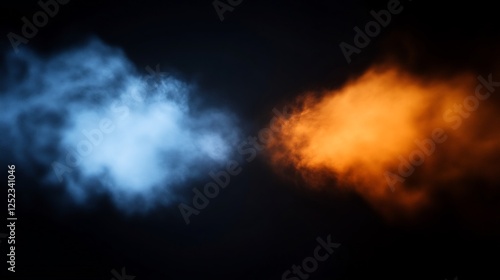 Obraz premium Abstract swirling blue and orange smoke contrasts dramatically against a dark...