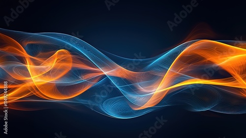 Fototapeta premium Abstract swirling blue and orange wave energy flow.