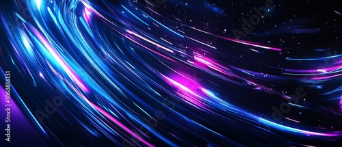 Obraz premium Abstract swirling blue and purple light streaks on a dark background