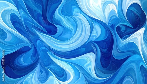 © Kurang, Fototapeta premium Abstract swirling blue and white paint