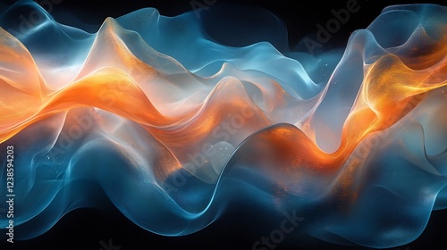 © heinng, Obraz premium Abstract swirling blue orange light energy flows dynamically. AI Generated