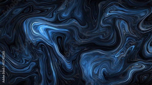 © YanabY, Obraz premium Abstract swirling blue patterns on a dark background creating a dynamic visual effect