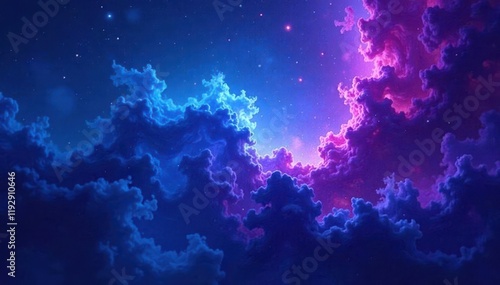 Fototapeta premium Abstract swirling blue purple nebula texture, ample copy space, magical,...